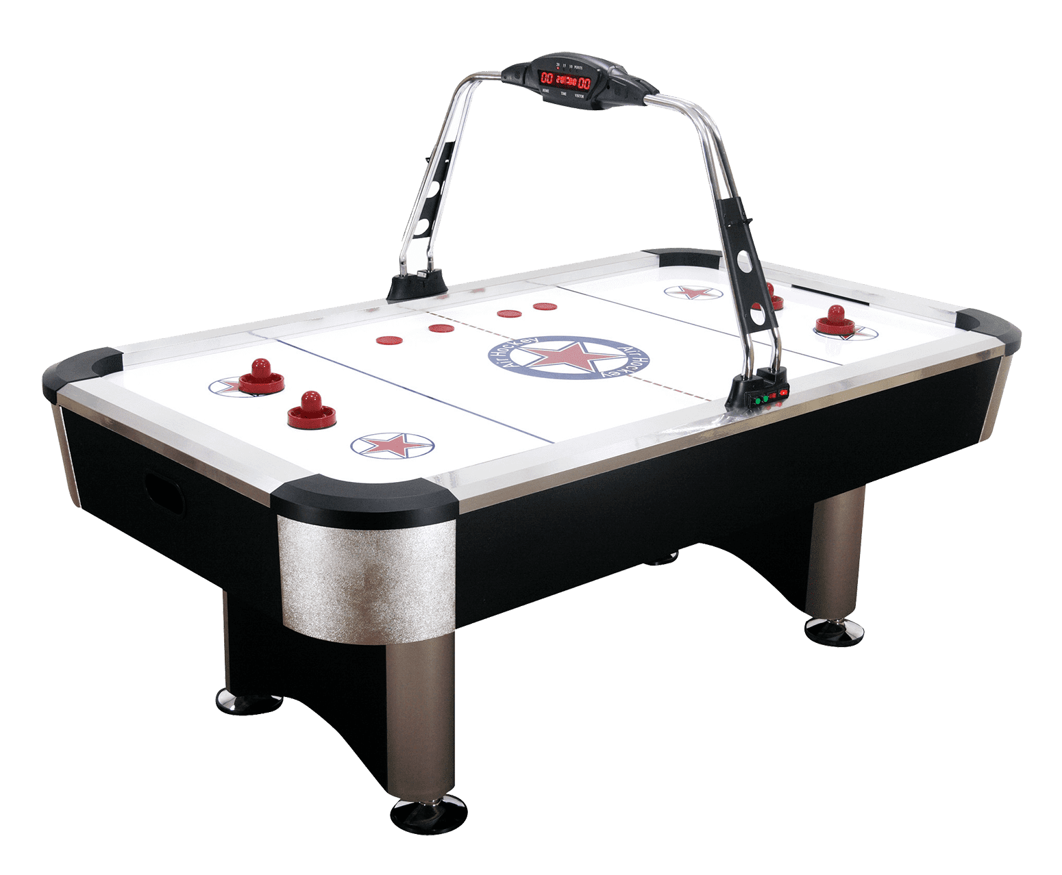 - Zaj- és élményfaktor: hangjelzés gólnál, az asztal felett kijelzővel sok nevetéssel és szurkolással – ideális a buli felpörgetésére.